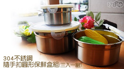 304不銹鋼隨手扣圓形保鮮盒組(三入組)